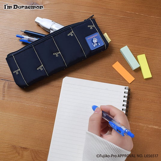 ドラえもんのシルエットとタケコプターがキルティングでデザインされたペンケース!落ち着いたカラーリングとスリムなデザインで、学校はもちろんオフィスでもお使いいただけます♪織りネームの配色がさりげないアクセント!ペンケースとしてはもちろん、中綿が入っているので、眼鏡・サングラスケースとしても♪