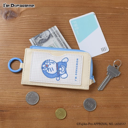 表情豊かなドラえもんの刺繍が施されたスリムウォレット!小銭やカードを分けてスマートに収納可能♪