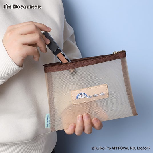 使いやすいサイズ感のメッシュポーチ!どら焼きにメロメロなドラえもんと、どこでもドアでお出かけしているドラえもんのデザイン。リップやイヤフォンなど、ちょっとした小物を入れるのに便利なサイズ感です。カラビナリング付きで、バッグなどにつけて持ち運びも◎