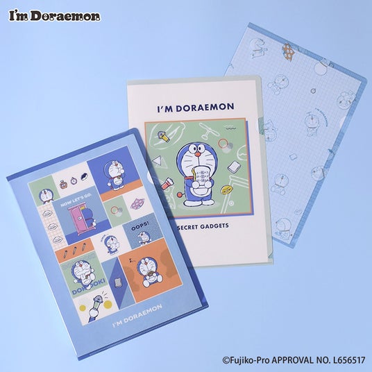 くすみカラーが学校やオフィスでも使いやすいクリアファイル♪様々な表情のドラえもんやひみつ道具が所々にあしらわれたデザイン!勉強や仕事が楽しくなっちゃうかも?