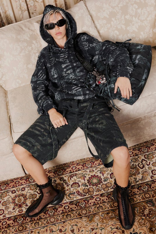 また、マスキュリンとフェミニンの間を行き来する、ジェンダーレスな自由なシルエットを提案しています。デニム、サテン、レース、リブ、メッシュと多様な素材が採用されているため、遊び心たっぷりのミックススタイルを楽しむことができます。