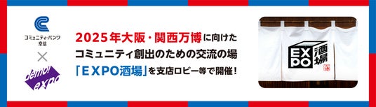 大阪・関西万博から生まれる価値を街に残し、まちごと万博をつくる活動を行っている、一般社団法人demoexpo(所在地:大阪府大阪市西区京町堀1-12-11 愛晃ビル4F/代表理事:花岡、以下demo!expo)は、コミュニティ・バンク京信(法人名:京都信用金庫、本店:京都市下京区、理事長:榊󠄀田 隆之)と共創し、京都府の多くの地域を対象に、「EXPO酒場」を開催します。万博の機運醸成を図るだけでなく、万博を契機に、京都の地域コミュニティの価値を高める活動を推進して参ります。