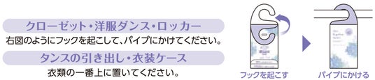 ●クローゼットや洋服ダンスなどのパイプにかけたり、引き出しの中に入れて使えます。