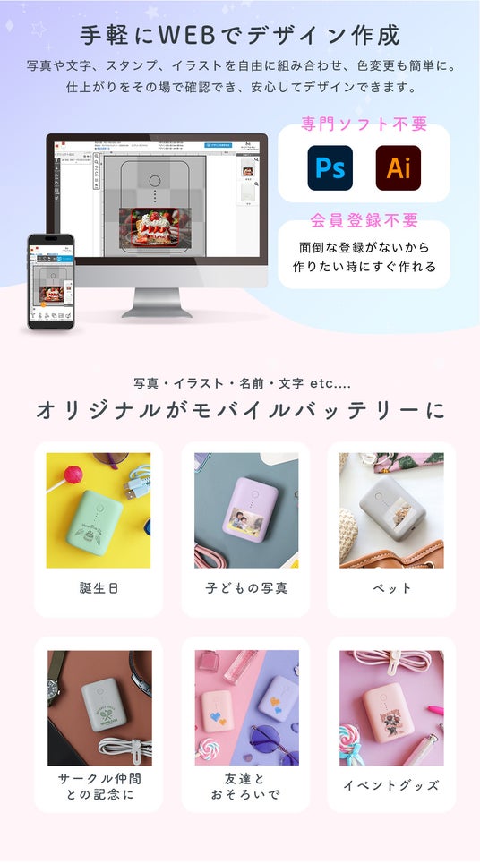 モバイルバッテリー 10000mAh PD18W 対応 個人名入れ プリント可能(MOT-MB10001)世界にひとつだけのデザインを誰でも簡単につくることができます。