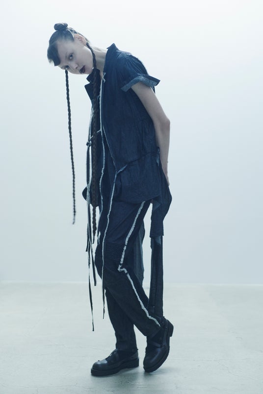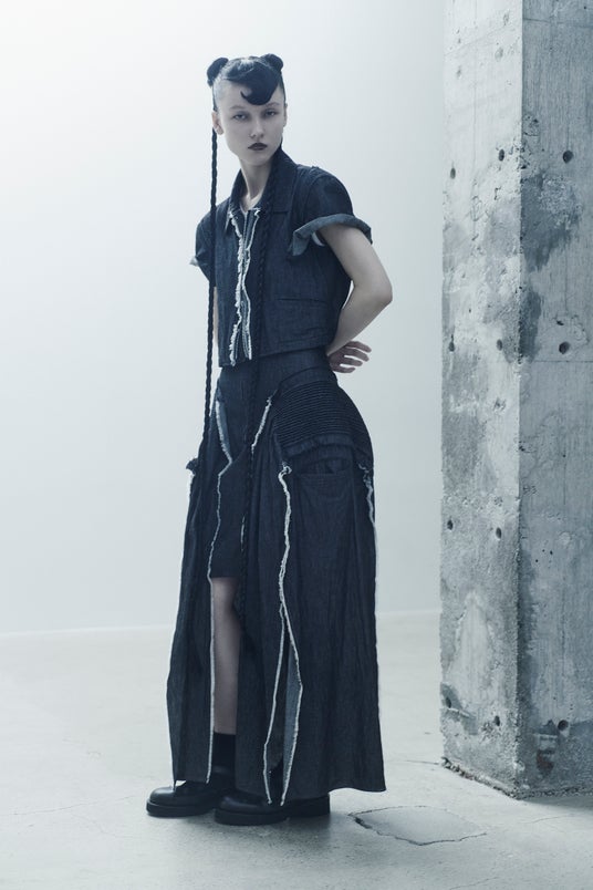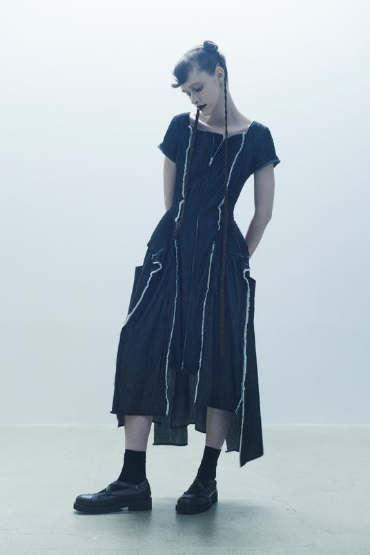 連続するファスナーが装飾的な曲線を生み出すシリーズ、渦巻の旋回を活かしたスパイラルやラッフルのディティール、横のシャーリングと縦のデニムの白ミミによるコントラストが軽やかなアイテムが登場いたします。