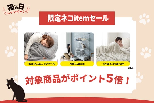 人気の「もはや、ねこ。」シリーズや、キャットケージなどの対象商品をポイント5倍でご購入いただけます。