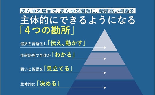 このような経歴を持つ著者が、ビジネスの様々な分野で意思決定を経験する中で見つけた、精度の高い判断を主体的に行うための4つの勘所を、豊富な実例とともに解説します。