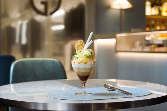 アルマーニ / カフェ 表参道の人気メニュー、月替わりのパフェ。3月は、日向夏 生姜 アールグレイのパフェが登場します。