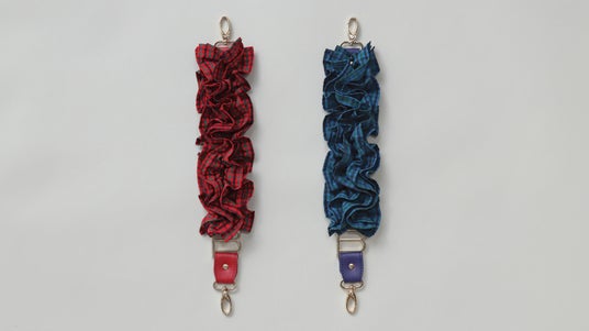 ファミリアチェックをフリル状に使用した華やかなハンドストラップが今回のコラボレーションで初