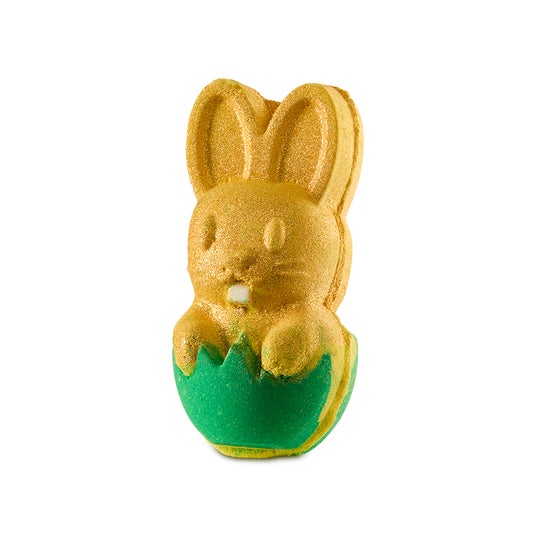 このバスボムはラッシュで働くスタッフのインスピレーションから生まれました。「子どもと一緒にシーグラスを拾いに出かけた際、化石を見つけたんです。ウサギは隠れるのが好きですから、化石みたいにウサギが見つかったら面白いのではと考えました。」