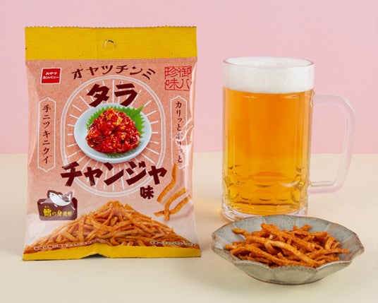 この度登場した新定番フレーバー「タラチャンジャ味」は、タラのすり身を生地にたっぷりと練りこんでフライし、韓国発祥の珍味「チャンジャ味」に仕上げました。カリッポリッとした揚げ物のおつまみらしい楽しい食感とともに、口いっぱいに広がる味わい深いタラの旨味、チャンジャの旨みとピリ辛さが織りなす絶妙な組み合わせを堪能いただけます。ビールのみならず、冷酒や白ワインともよく合う、おつまみに仕上がっています。