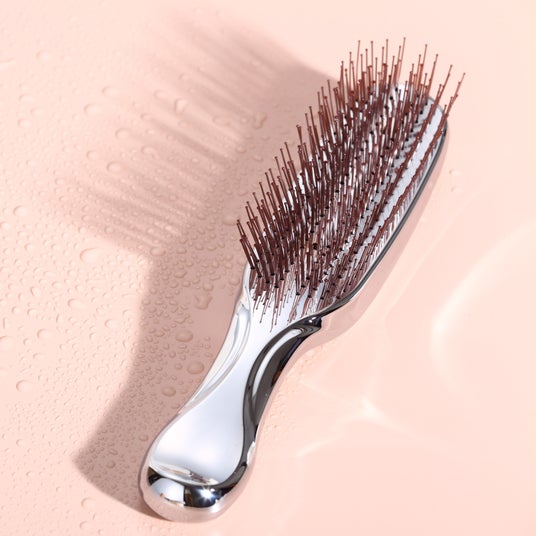 静電気が発生すると、より多くの花粉が引き寄せられ、髪にたっぷり付着してしまうことも。静電気が気になる方向けに特化して作られたこのブラシは、ハンドルのクロム加工と静電気防止剤が練り込まれたピンで、ブラッシング時には静電気を軽減させます。髪の毛の絡みをやさしくほぐし、まとまりのある髪に。