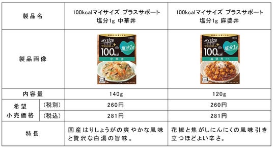 大塚食品株式会社(本社:大阪市中央区、代表取締役社長:池内呉郎)は、『マイサイズ プラスサポート』シリーズから「100kcalマイサイズ プラスサポート 塩分1g 中華丼 / 麻婆丼」の2品を、2025年3月17日(月)より全国で発売します。「おいしさ」と「減塩」※1を両立した満足感のある食事で、日本人の健康課題解決に貢献します。