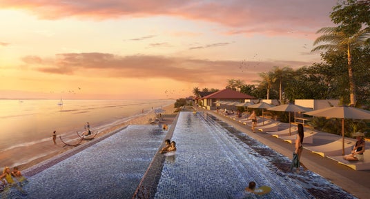 1.天然の美しいビーチ沿いに、2つのインフィニティプールと冬季も楽しめるウェルネスエリアが誕生