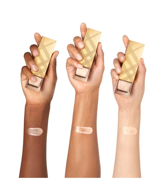 – バーバリーのアイコニックなトレンチコートの革新的な生地に着想を得て開発されたトレンチ プロテクト テクノロジーは、水や湿気、汗、熱への高い耐久性と、快適な付け心地の両方を叶えるウェザープロテクションを提供します。薄くて通気性のあるフィルムで、長時間マットで潤いのある肌を持続します。