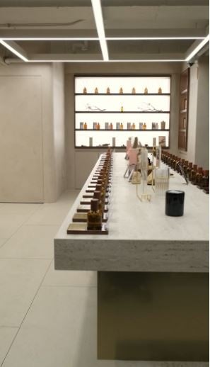 また、シンプルでモダンなデザインのインテリアにより、ブランドの世界観をより強調され、訪れる人々がより快適に香りを試し、購入できるような工夫が施されています。