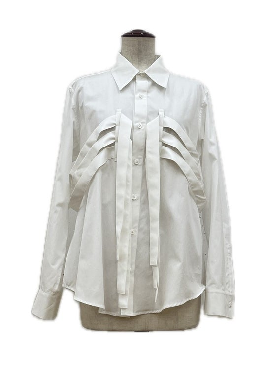 3本のベルトが配されたブラウス。ベルトの調整によってシルエットを変化させることが可能。コットン *他にブラックあり