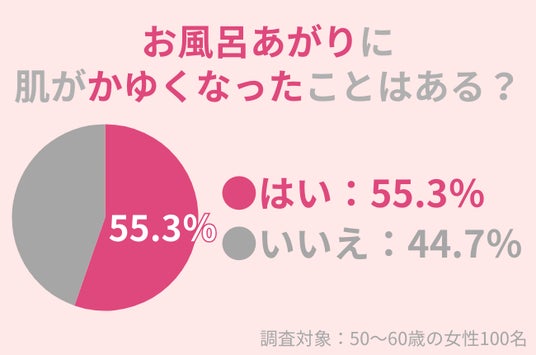 調査の結果、半分以上の50代女性がお風呂上がりに肌のかゆみを感じたことがあるとわかりました。