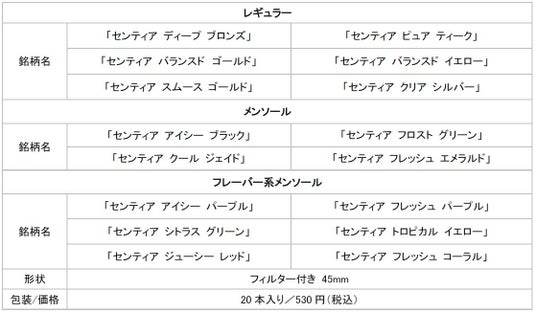 今回の「センティア スムース バイオレット」の発売に伴い、「SENTIA(センティア)」製品のラインアップは全17銘柄となります。