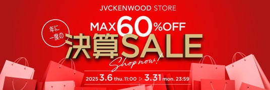 株式会社JVCケンウッドは、公式オンラインストア「JVCケンウッドストア」にて、「決算SALEキャンペーン」を実施します。期間中、最大60%オフの限定特別価格や無料ギフトラッピングなど、特典を多数ご用意。さらに、キャンペーン開始前日の3月5日(水)までにメールマガジン登録をしていただくと、最大5,000円OFFとなるメールマガジン限定のクーポンが配信されます。キャンペーン期間は、3月6日(木)11:00~3月31日(月)23:59です。