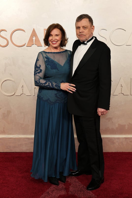 マーク・ハミルは、メンズ コレクションからブラックウールとシルクのピークドラペルタキシードに、ホワイトコットンのウィングチップカラーシャツを纏い、ブラックシルクの蝶ネクタイと、ブラックレザーのダービーシューズを合わせました。