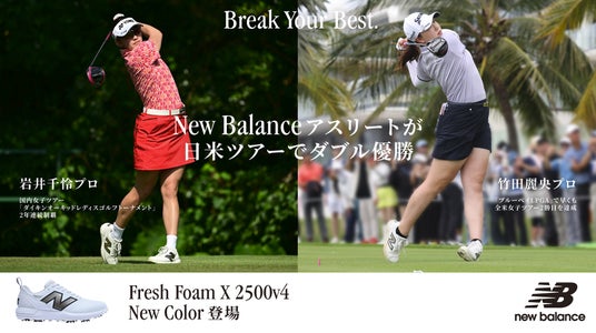 両プロはニューバランスの「Fresh Foam X 2500v4」を昨年より引き続き愛用しており、今年の新カラーを着用しての勝利となりました。Fresh Foam X 2500v4について、岩井プロは「スイング時の安定感と歩行時の快適性を両立させ、どんな状況でも安心している頼れる武器となっています。」、竹田プロは「思い切りスイングできるグリップ力とフィニッシュ時の安定感が気に入っています。」と語っています。ニューバランスフットウェアは多くのプロゴルファーの足元を支え、勝利に貢献しています。