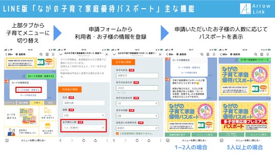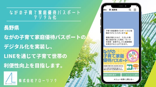 この度、株式会社アローリンク(本社:兵庫県神戸市中央区雲井通4-2-2 マークラー神戸ビル4階、代表取締役:蓬莱和真)は、長野県(知事:阿部 守一)が拡張ツール「Liny」を活用し、長野県LINE公式アカウントにて県内の子育て世帯向けの「ながの子育て家庭優待パスポート」を新たに導入し、運用を開始しました。
