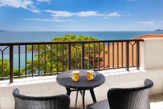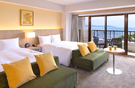 ゴッホの7つのヒマワリをイメージした客室は、月の光が海面に描き出すムーンロードや海に昇る朝日を望みます。ひまわりアロマやハーブティ、カップ、スパークリングワイン、Refaドライヤーやシャワーヘッドが揃い癒しのステイが叶います。