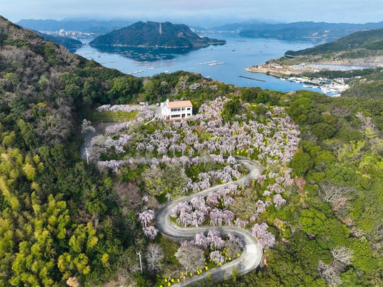 標高47.5mから鳴門海峡を一望できる絶景スポット。例年3月半ば頃から約350本のしだれ桜が見頃を迎え、うぐいすの鳴き声とともに春の訪れを感じさせてくれます(入山料:300円)