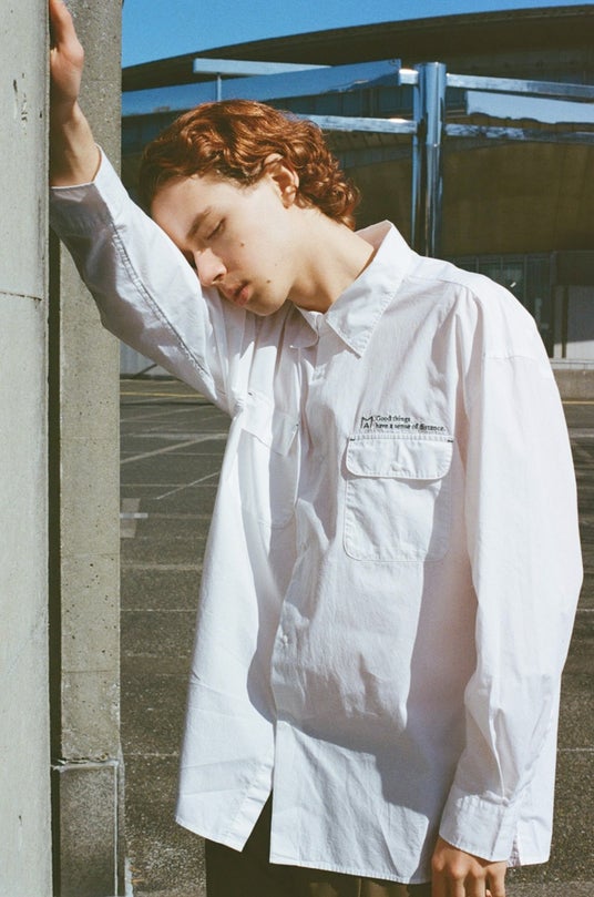 オーバーサイズシルエットのベーシックなレギュラーシャツのセットアップ。