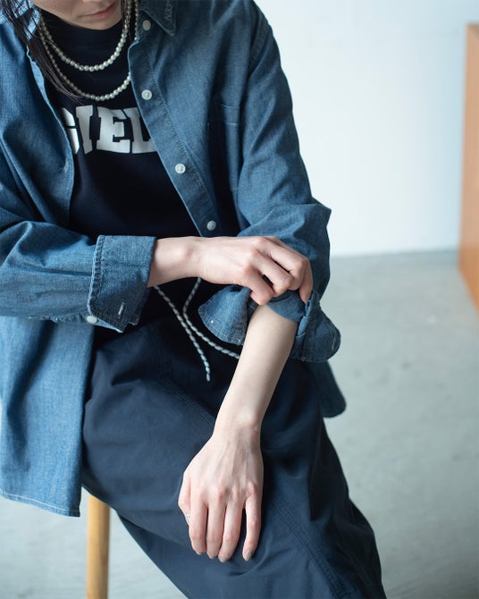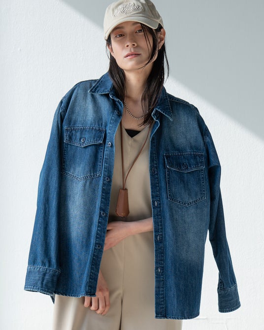 シルエット、ダメージを入れる箇所、ポケットやヨークなどのディティールにこだわって作られたデニムシャツ。一般的なデニムシャツよりも軽くて柔らかい素材を使用しているので、着心地の良さにも定評があります。