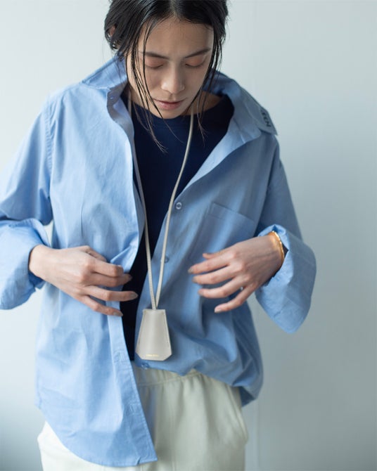 Lazo_N33°の人気シャツアイテムをカットソー素材で作りました。シャツへのこだわりはそのままに、カジュアルダウンすることでデイリーに気軽に着られるアイテムに仕上げました。カジュアルになりすぎないように、ネックラインは大きめに開けたスキッパーネックにし、スッキリとシャープな印象を保っています。リラックス感のある素材で、オフの日にもバッグに忍ばせておきたい、大人の普段使いにぴったりな1枚です。