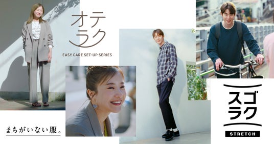 「どんな時でもサマ見えするオテラクシリーズは、まちがいない服。篇」「何事にもアクティブなスゴラクストレッチシリーズは、まちがいない服。篇」それぞれの日常に寄り添う商品と様々な表情が新鮮な新TVCM