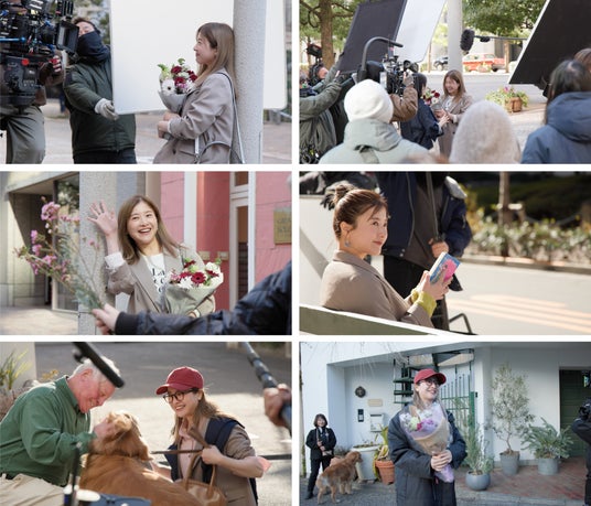 寒さを感じさせない晴れやかな吉高さんの笑顔で現場が一気に明るくなりました。今回はスペシャルゲストのワンコも一緒です。