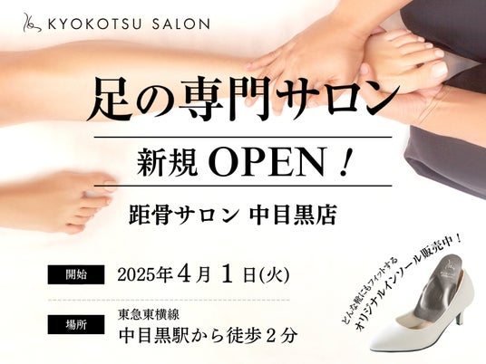 SNSで話題の足の専門サロン「距骨サロン」が、全国93店舗目となる「距骨サロン中目黒店」を2025年4月1日(火)に新規OPENいたします。