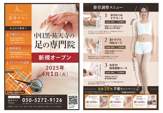 【距骨サロン中目黒店】オープニング半額キャンペーン実施中
