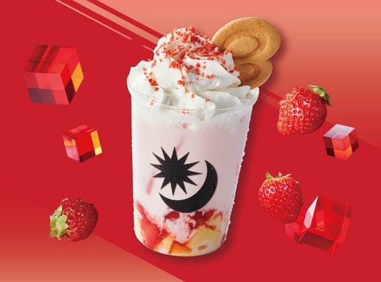 プロントで20年以上愛されている「つぶつぶいちごミルク」にいちごシロップを加え、ミルクをピンク色に彩り、ぷるぷるのカスタードプリンを合わせました。まるでパフェのような見た目で飲みごたえのあるドリンクです。トッピングの甘酸っぱいフリーズドライのいちごと、「P」の文字が入ったクッキーと一緒にお楽しみください。