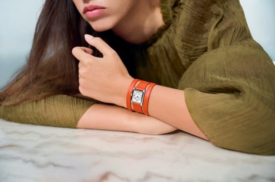 シルバーカラーで、サンドブラスト仕上げを施したコスモ(サークル)ダイアルが特徴的な3 つのバリエーションも展開。マットホワイトのアワーインジケーターが外側のスクエアのセクションと内側のラウンドのセクションを分け、さらにマットホワイトのラウンド型スモールセコンドを6 時位置に配置。ローマ数字と細長いインデックス、そしてブルースティール針が、文字盤の明るい色調とのコントラストを生み出しています。コレクションのコンテンポラリーなエレガンスを反映したこれらのモデルは、レッド、オレンジ、グリーンの3 色から選べるナッパレザーストラップを揃えました。