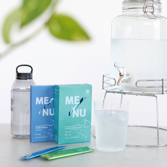 「HUMANEED」シリーズは、パウダーを水に溶かすだけで効率的な水分補給ができる(※適度な糖分と電解質を含むため)粉末清涼飲料です。
