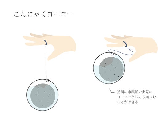 私は、こんにゃくが水につけられて売られているという点に着目し、日本の伝統的な遊び道具であるヨーヨーをイメージして、デザインを行ないました。水風船自体は、透明でこんにゃくが見えるものになっています。食べる前にヨーヨーで少し遊び、ボールを割って玉こんにゃくを取り出すという要素によって、何よりも楽しんで食べるということを意識しました。このデザインによって、一度は遊んだことがあるであろうヨーヨーによる懐かしさを感じて欲しいと考えています。