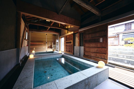 中庭にある蔵を改装した温浴・水風呂・サウナ