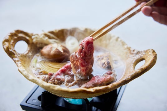 夕食は甲州ワインビーフのすき焼きを3種類の卵でお召し上がりいただきます