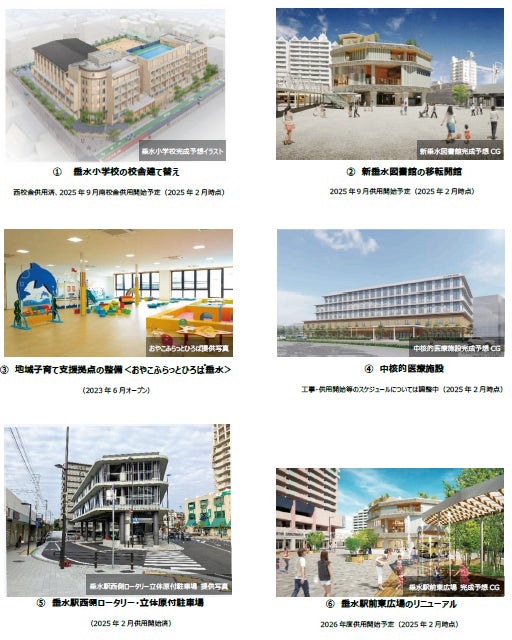 垂水駅周辺エリアにおいては、神戸市による「まちの質・くらしの質」を高めるプロジェクトの一環として、「生まれ変わる海辺のまち」を掲げた垂水活性化プランが進行しており、垂水小学校の校舎建て替え、新垂水図書館の移転新設、中核的医療施設の計画、垂水駅前東広場のリニューアルなどが予定されています。