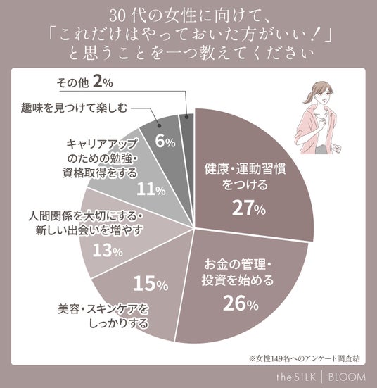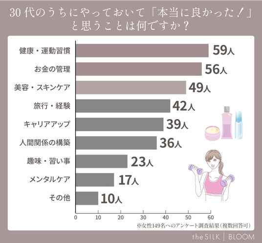 株式会社HYV(本社:東京都目黒区、代表取締役:茅野 航平)が運営する「the SILK BLOOM」では、「30代の女性がやっておくべきこと」に関するアンケート調査を実施いたしました。