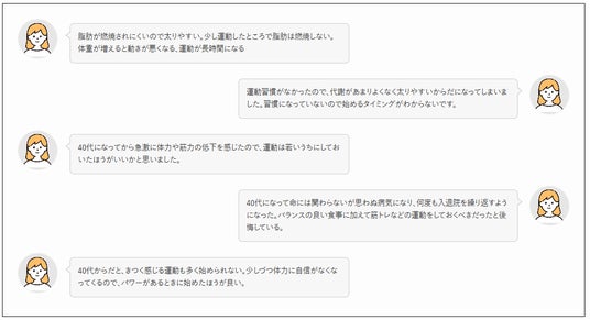「30代後半から体力が落ちるのを実感した」「40代になっても元気でいるために始めてよかった」という声が多数ありました。