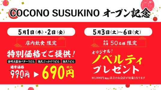 ■「山下本気うどん COCONO SUSUKINO」オープン記念キャンペーンについて
