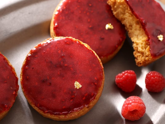 ブルトンヌのスペシャリテである発酵バターの豊かな風味が広がる“ガレット・ブルトンヌ”に、甘酸っぱいフランボワーズのコンフィチュールとアイシングを添えて仕上げました。紅茶と合わせてお楽しみいただきたい、華やかで贅沢な美味しさです。