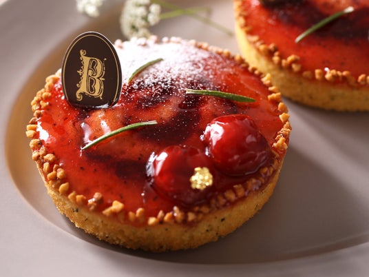 上品なベルガモットの香りが広がるアールグレイ生地に、甘酸っぱいチェリーを合わせた新作のガトー・ナンテ。キルシュ香るチェリーのコンポートやコンフィチュールの甘酸っぱい果実の味わいが華やかに広がります。