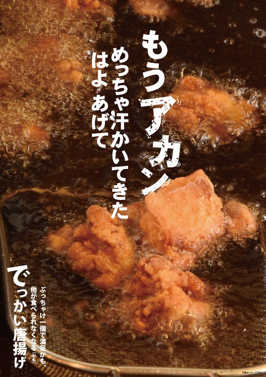 じっくり24時間タレに漬け込んだ鶏唐。余熱も計算した、こだわりの二度揚げで肉の旨味を閉じ込めるジューシーさを追求。1ケあたりのボリュームは一般的な唐揚げの約2倍!(当社比)満腹満足間違いなし!