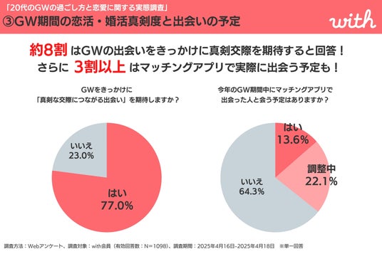 3.約8割が真剣交際への期待を寄せ、実際に3人に1人はGWに出会いの予定ありと回答